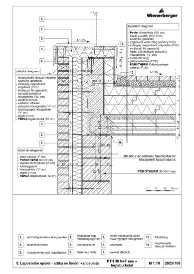 Lapostetős épület - attika és födém kapcsolata - PTH 30 N+F neo + téglaburkolat