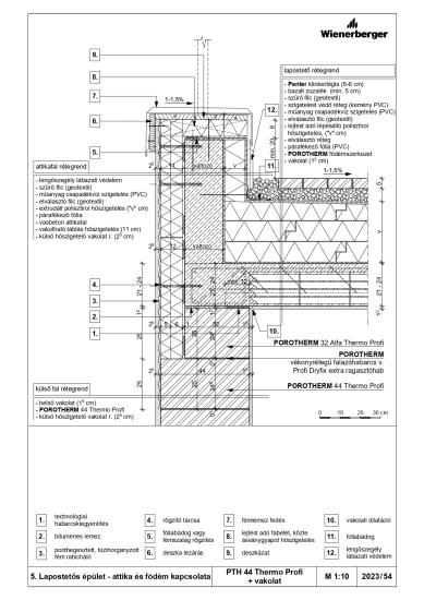 Lapostetős épület - attika és födém kapcsolata - PTH 44 Thermo Profi + vakolat