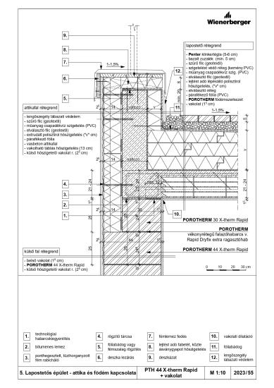 Lapostetős épület - attika és födém kapcsolata - PTH 44 X-therm Rapid + vakolat