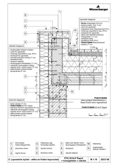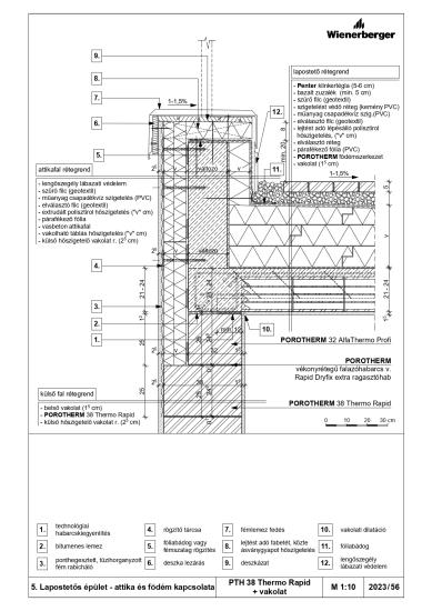 Lapostetős épület - attika és födém kapcsolata - PTH 38 Thermo Rapid + vakolat