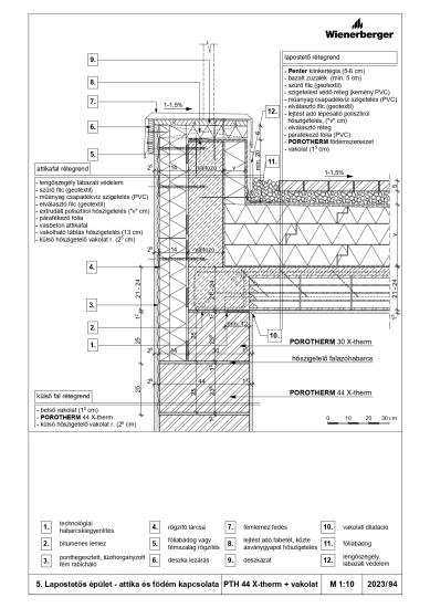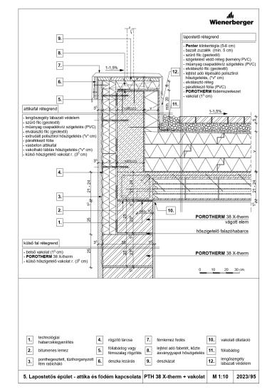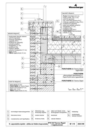Lapostetős épület - attika és födém kapcsolata - PTH 38 Thermo Rapid + téglaburkolat