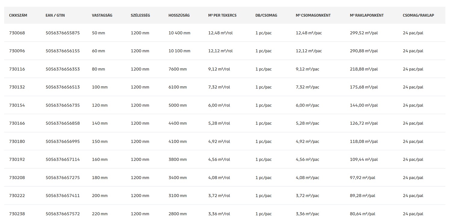 Hővezetési tényező: λ= 0,037 W/mK