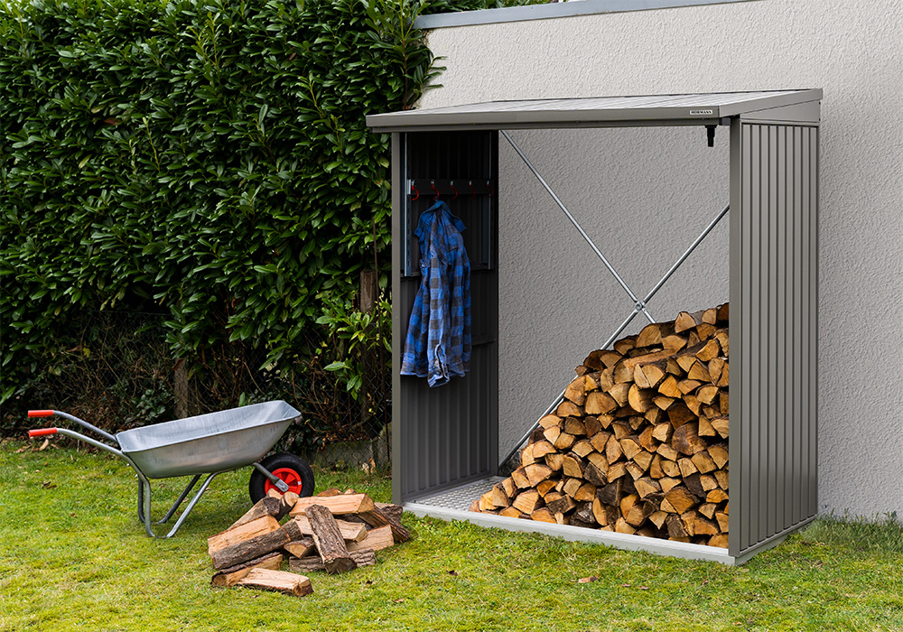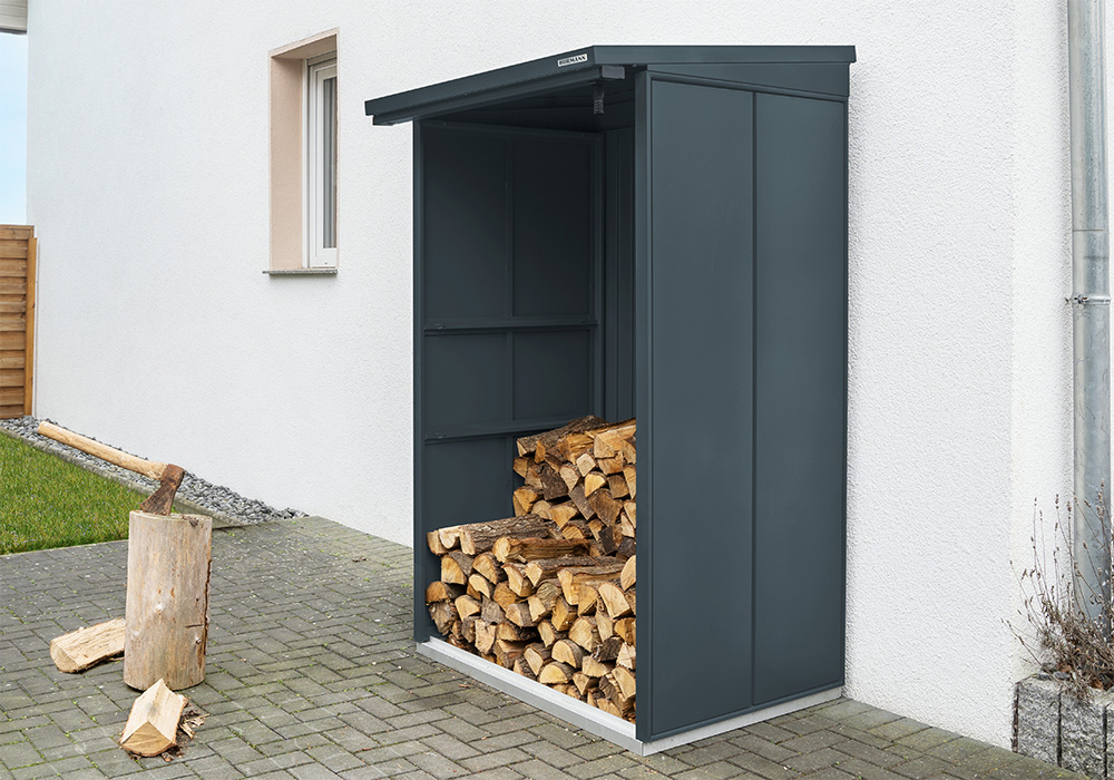 A kültéri használatra szánt tűzifatárolóink egyedileg is megtervezhetők, így pontosan az Ön igényeire szabhatók. Így Ön mindig száraz helyen, biztonságosan tárolhatja a tűzifát. Állítsa össze tökéletes tűzifatárolóját különböző stílusokból, színekből és méretekből. Kiegészítőink révén a Hörmann tűzifatárolók bővített tárolási lehetőségeket is kínálnak.