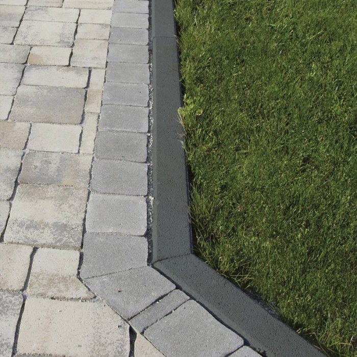 Klasszikus stílusú kerti szegély antracit színben, kerti utak, járdák, kisebb autóforgalmú felületek megtámasztására, határolására, lezárására, kvarc kopóréteggel.