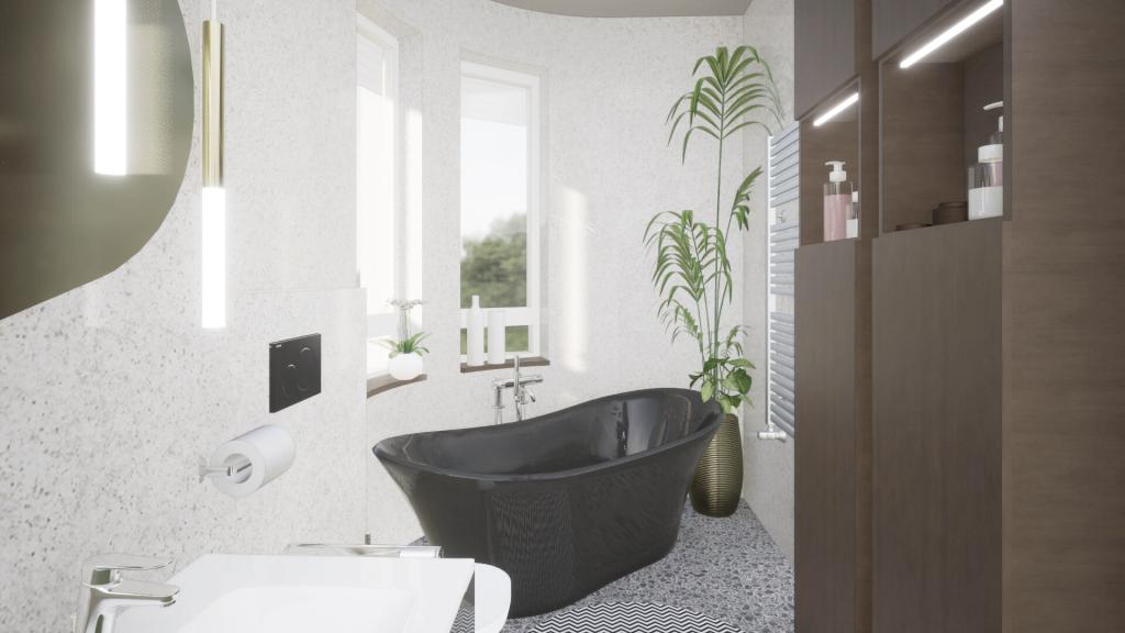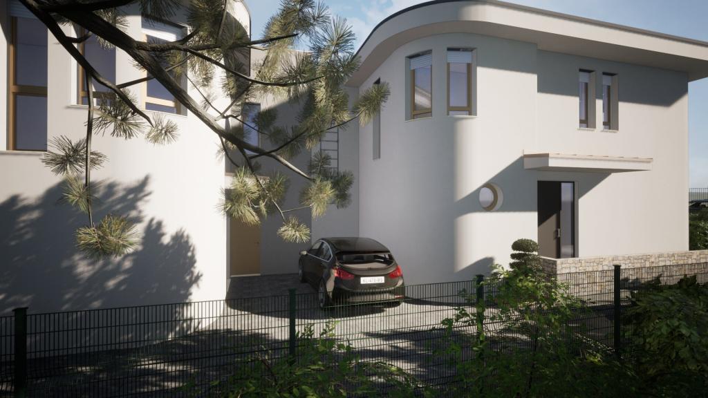 Tervezett kétlakásos lakóépület Budaörs kertvárosában, kialakult városi környezetben. Tervezési feladat volt az építészeten túl a marketinges anyag összeállítása Megbízó számára, ami a belső kialakítás tervezését és a látványterveket is jelentette. A tervezett épület korszerű műszaki tartalommal, Kortárs-bauhaus stílusban készült. Tervezés éve:2024. Építés éve:2025.