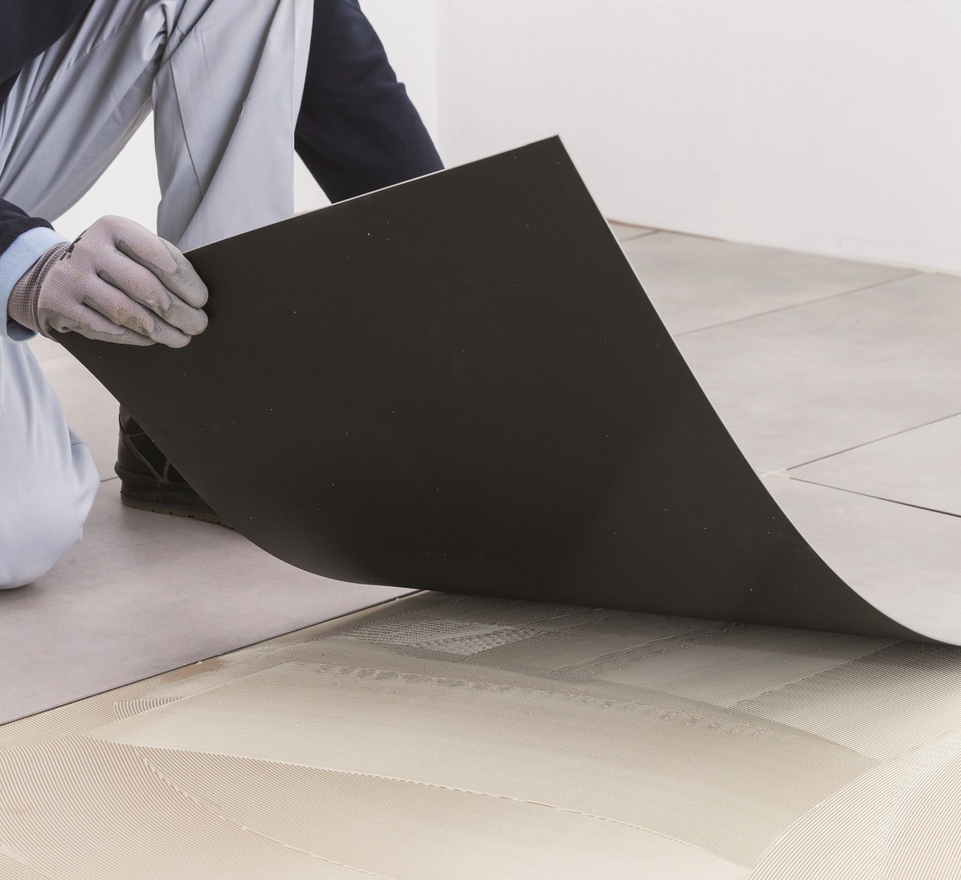 MAPEI PLANIPREP 4 LVT kiegyenlítő termék segítségével, és erre a teljes rendszer ezt követően akár újabb szigetelés nélkül is felépíthető.