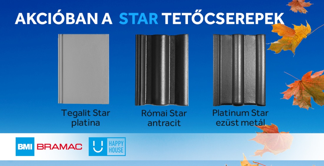 Ősszel a levelek mellett a BMI Bramac tetőcserepek árai lehullottak: most akár 46% kedvezménnyel beszerezhetőek a legújabb Star tetőcserepek. A Római Star, Platinum Star és Tegalit Star betoncserepekkel a háztulajdonosoknak nem kell választaniuk a minőség és az esztétikus megjelenés között, hiszen a BMI Bramac egyesítette a finom megmunkálású, csillogó felületet és a betoncserepek jól ismert ellenállóságát. A csúcskategóriás tetőcserepekre kiemelt fagyállóság és színstabilitás jellemző extrém UV-terhelés esetén is, a sima felületen ugyanis kevésbé tudnak megtapadni a szennyeződések. Így a csillogó szépség mellé hosszan tartó védelem társul a Star technológiának köszönhetően, ezért a tetőre évek múlva is olyan jó lesz ránézni, mint az átadás napján.