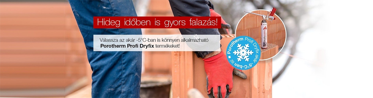 A hideg idő beálltával a Dryfix építési technológiának köszönhetően a hagyományos falazáshoz képest akár kétszer gyorsabban, téli időjárási viszonyok között is jó minőségű, hőszigetelő falazat építhető.
