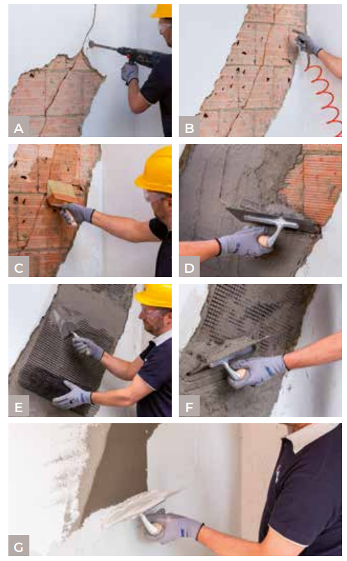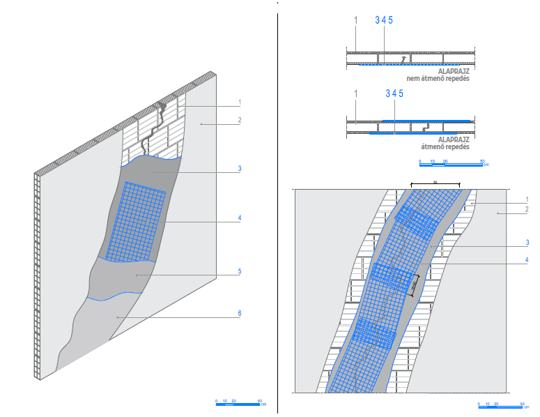 3. Repedések javítása kitöltő falakon és válaszfalakon - Repedések helyi javítása kis vastagságú megerősített vakolással