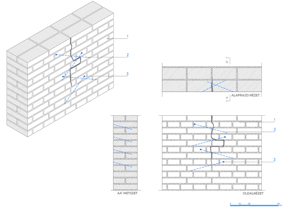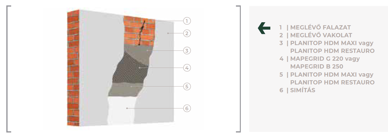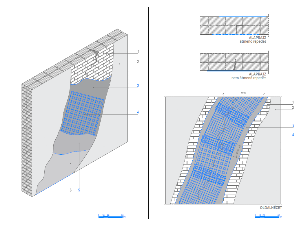 2. Teherhordó falazatok repedéseinek javítása - Repedések helyi javítása FRCM rendszerrel