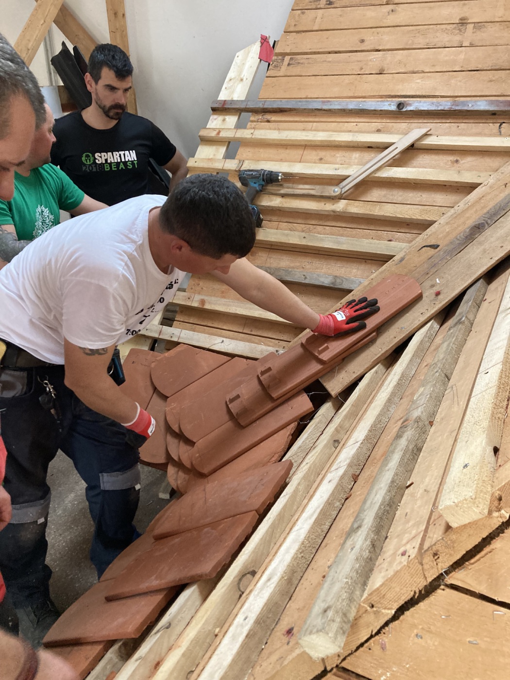 A tetőfedők számára meghirdetett Tondach képzési program helyei is gyorsan beteltek — összesen hat alkalommal folyik az oktatás a békéscsabai és tatai oktatóközpontban egy vagy kétnapos képzéseken. A tetőfedő tanfolyamoknál is elődleges a gyakorlati megközelítés, a résztvevők kis csoportokban együttműködve maguk építenek meg egy-egy tetőrészletet attól függően, mi a szakmai feladat. Ebben külsős szakemberekből és a vállalatnál dolgozó műszaki és alkalmazástechnikus kollégákból álló szakmai csapat segíti a tanulni vágyó tetőfedőket.