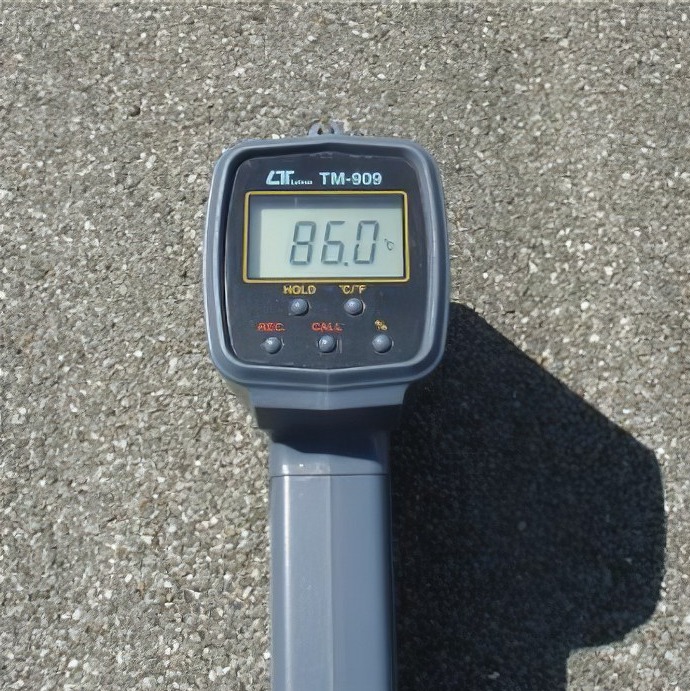 Egy (például 100 mm-es vastagságú polisztirol panelekkel) hőszigetelt tetőn akkor is, ha az hagyományos módon szürke színű palaörlemény felülettel védett, a nap legmelegebb óráiban, főleg szélcsendben, a felszíni hőmérséklet meghaladhatja a 85 °C-ot is. Szomszédos tükörfelületek (pl. üveghomlokzat, illetve horganyzott vagy alumínium lemezzel fedett gépészeti berendezések) jelenléte esetén azonban a 130 °C fokot (!!!) is meghaladhatja (Lásd 1. és 2. kép).