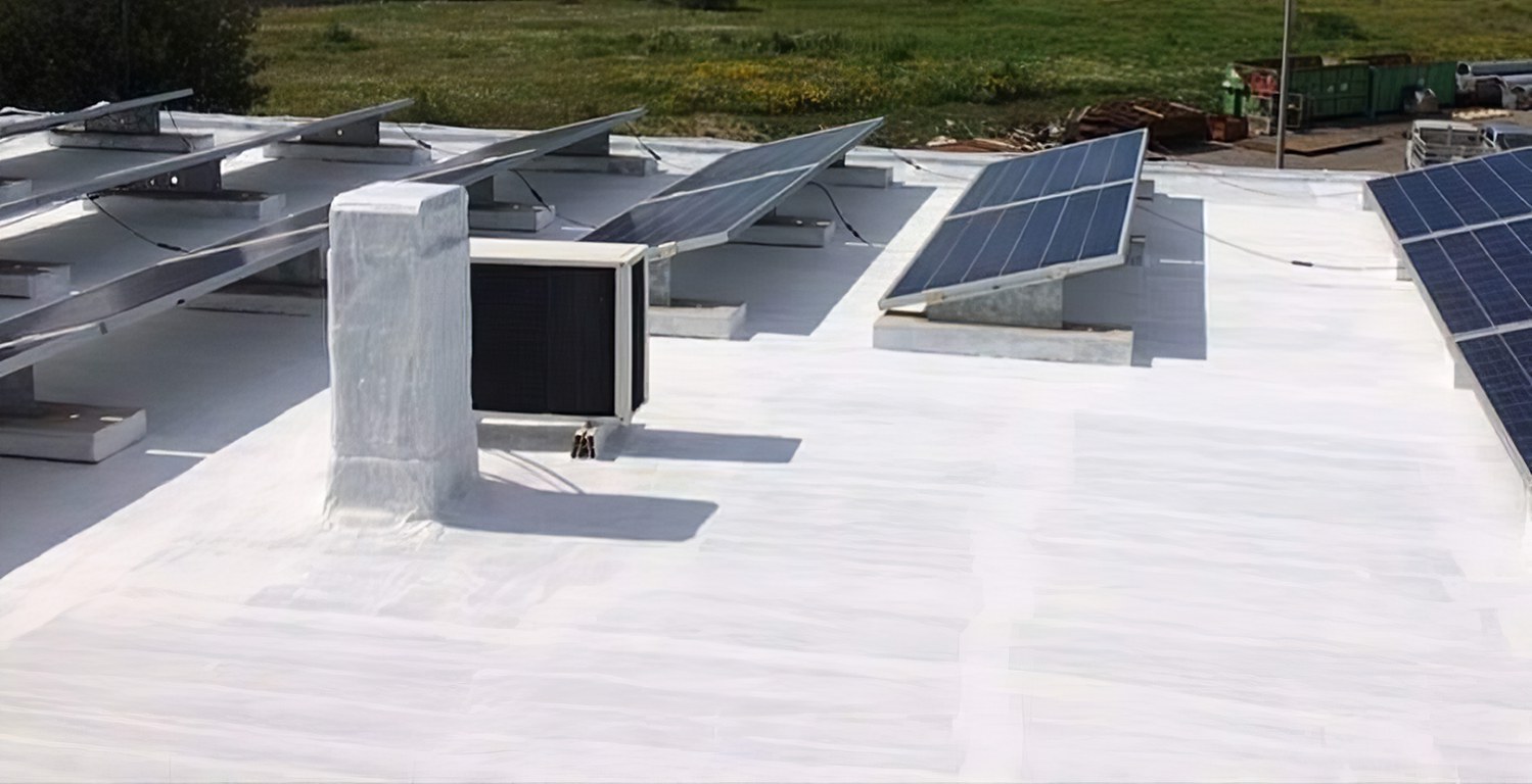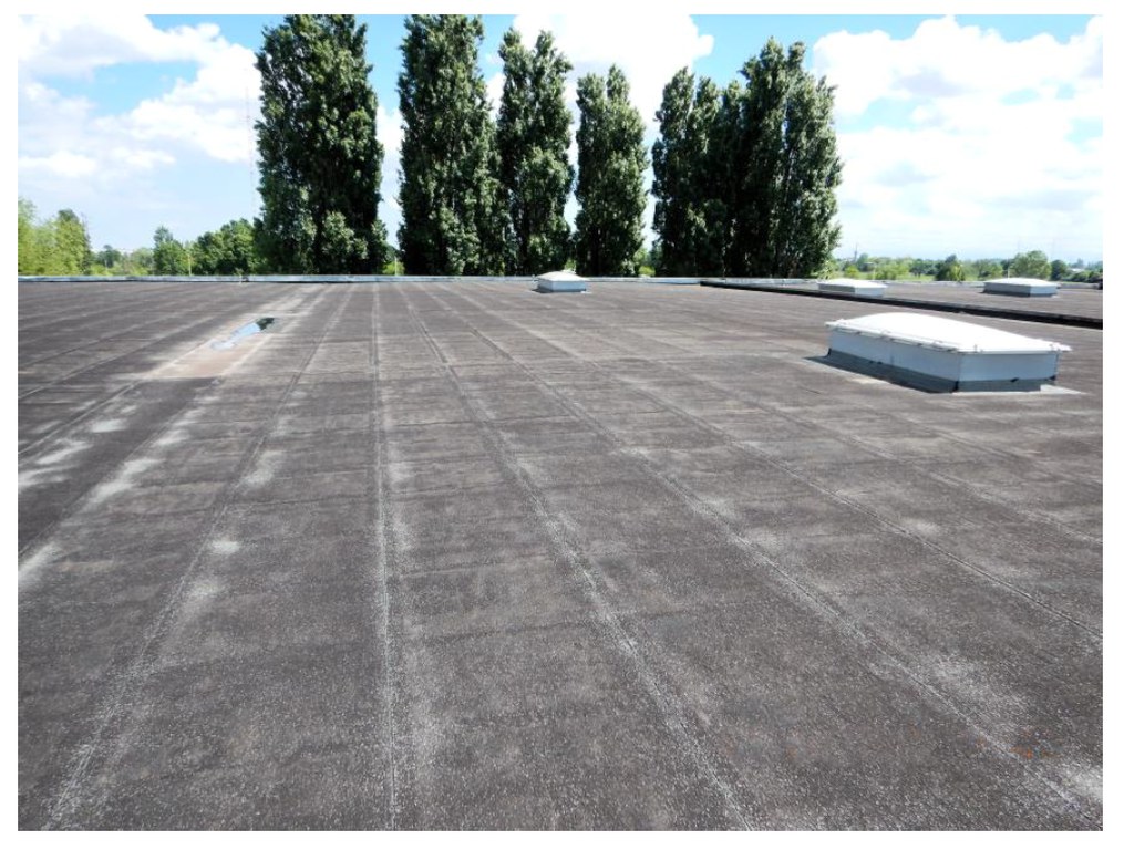 Ezért azt javasoljuk, hogy a napsugárzásnak közvetlenül kitett felület esetén fehér vagy nagyon világos palaörlemény felületű (lásd 7. kép), elaszto-plasztomer polimer-bitumenes lemezt használjunk. Még jobb, ha nagy fényvisszaverő képességű védőbevonattal kezeljük a felületét (lásd 8. kép), azért hogy jelentősen (akár 40 °C fokkal!) csökkentsük a lemez felszíni hőmérsékletét, megőrizve az esztétikus külsejét, csökkentve elöregedését, és megőrizve a vízszigetelő funkcióját sokkal hosszabb ideig, mint az a tető esetében egyébként várható lenne.