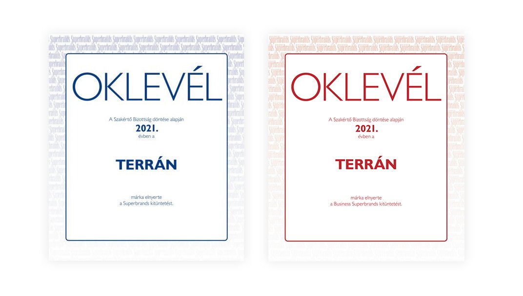A Superbrands a nagyközönség számára is ismert védjegy, a magas minőség szimbóluma. A nemzetközi program keretében a legkiválóbb fogyasztói és üzleti márkák részesülnek díjazásban. Az elismerés odaítéléséről - egy többlépcsős előszűrést követően - egy összesen 41 tagú, független, marketing és menedzsment területen aktív szakértőkből álló bizottság dönt minden évben. 2021-ben a Terránt sokadik alkalommal találták érdemesnek a Superbrands 2021 és a Business Superbrands 2021 védjegy viselésére.