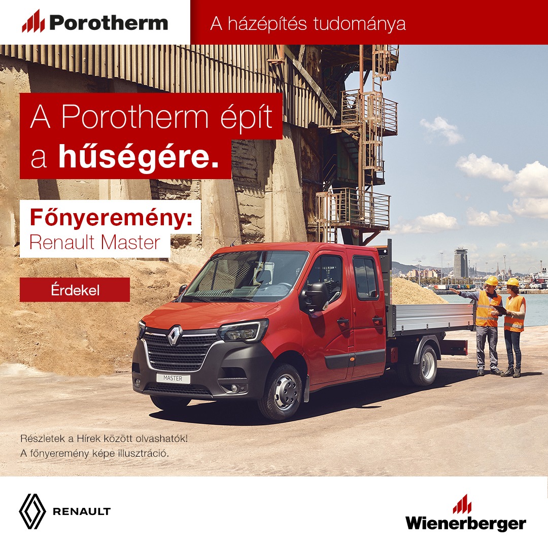 Az év végén pedig nyereményjáték keretében a feltételeket teljesítő kivitelezők, vállalkozások között egy Renault Master duplakabinos, platós kisteherautót sorsol ki a Porotherm gyártója.