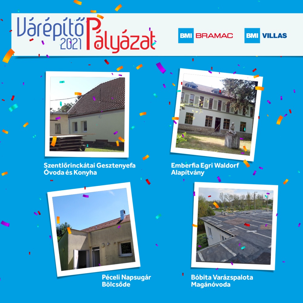 Csak úgy, mint előző évben, idén is online formában zajlott a Várépítő pályázat zsűrizése és eredményhirdetése: az előző évekhez képest rekord mennyiségű, 21 cég csatlakozott a kezdeményezéshez, köztük a sokéves hagyományt folytatva a BMI Bramac és a BMI Villas is. A két márkának köszönhetően ezúttal négy, gyermekekkel foglalkozó intézmény újulhat meg, és válhat biztonságosabbá.