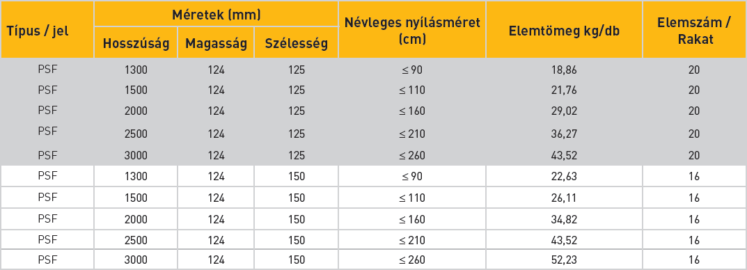 Teherhordó áthidalók (PSF)