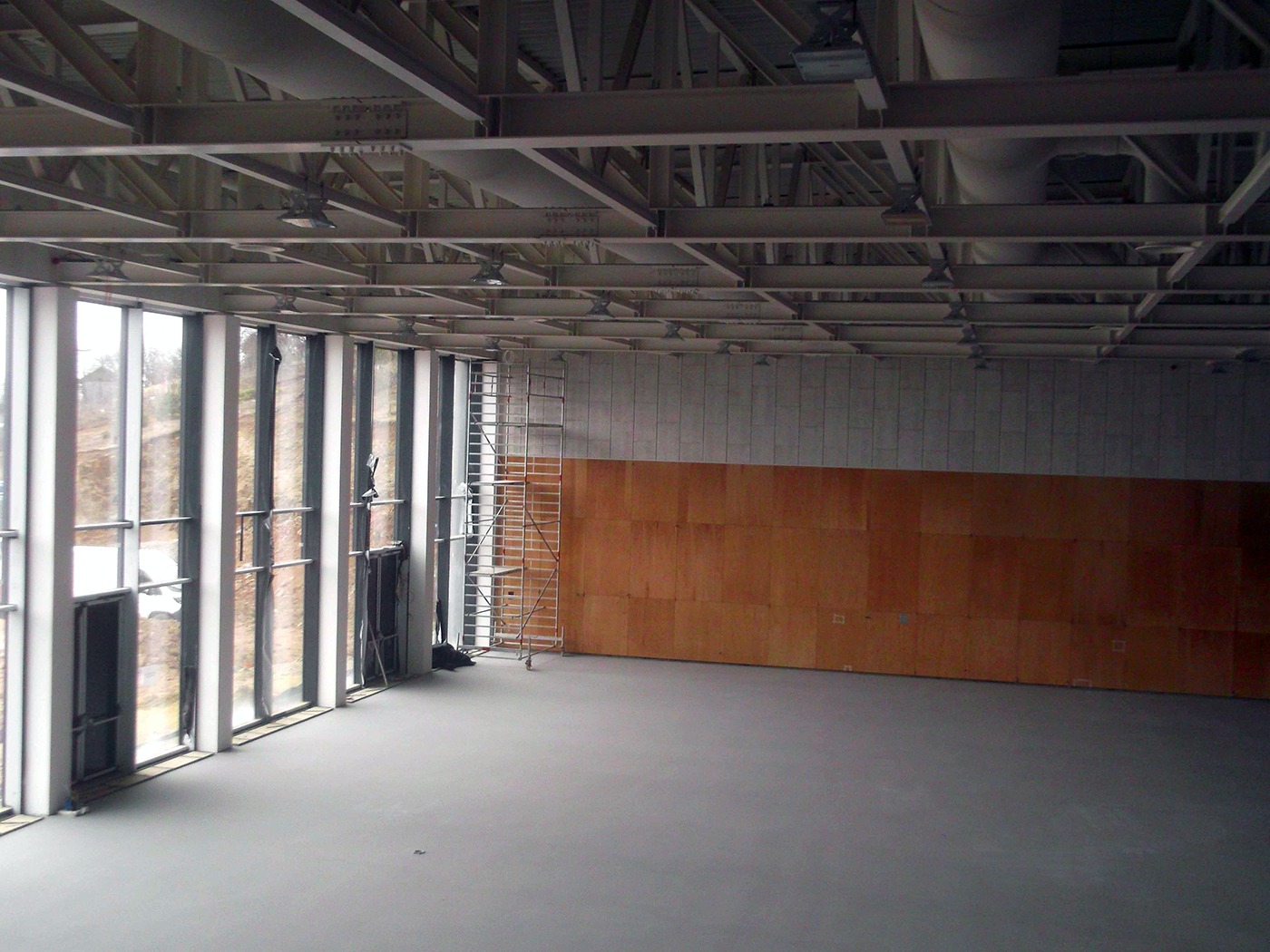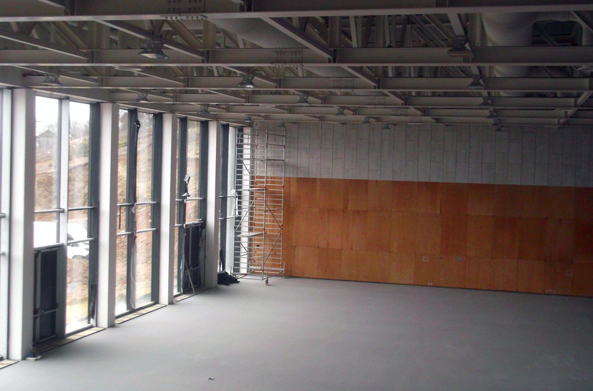 Ezúttal Sátoraljaújhelyen, a Várhegy nyergében elhelyezkedő Rákóczi Hotel, Tábor és Rendezvényközpont sportkomplexumának építése során alkalmazott zajcsillapítást szeretnénk Önöknek bemutatni (generál kivitelezés: Weinberg '93 Sárospatak és Rex-Bau, Sátoraljaújhely). A sportcsarnokban a küzdőtér fölötti falfelület hangelnyelő borítása, amely egyben dekorációs célokat is szolgál, Knauf Insulation Tektalan 037/2 anyagunkból készült, nagyjából 430-440 m2 felületen.