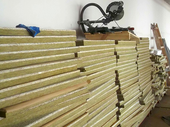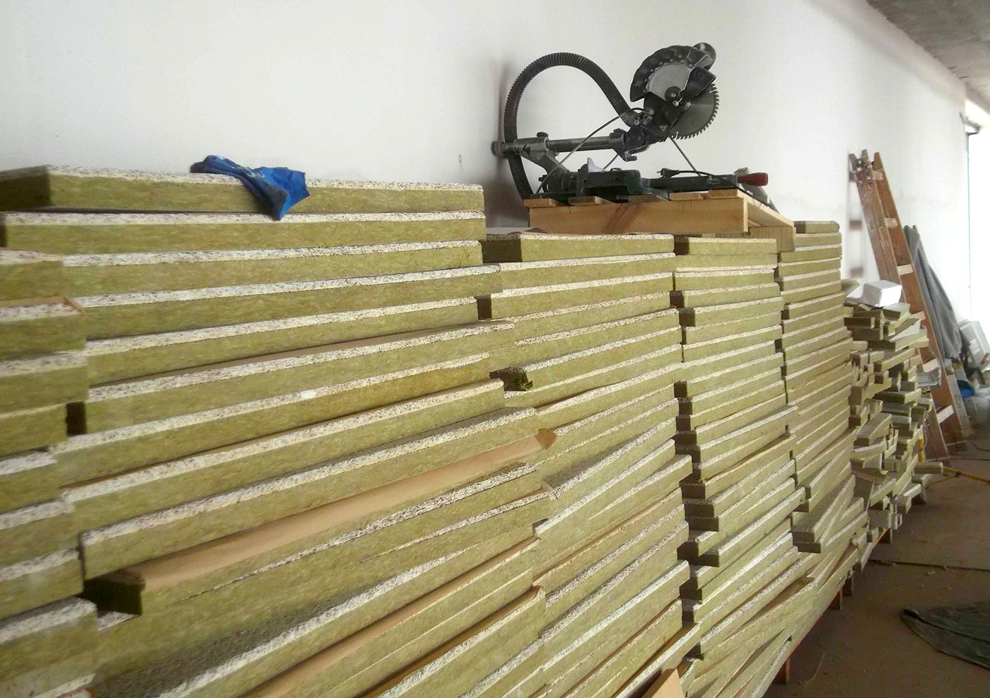 A (fagyapot-kőzetgyapot) kompozit lapokat a beton falszerkezethez lécvázak segítségével, dűbelezéssel rögzítették a szakemberek (szakipar: Terra-Korr, Miskolc). A helyszínen szükséges méretre vágást egyszerű asztali körfűrésszel oldották meg.